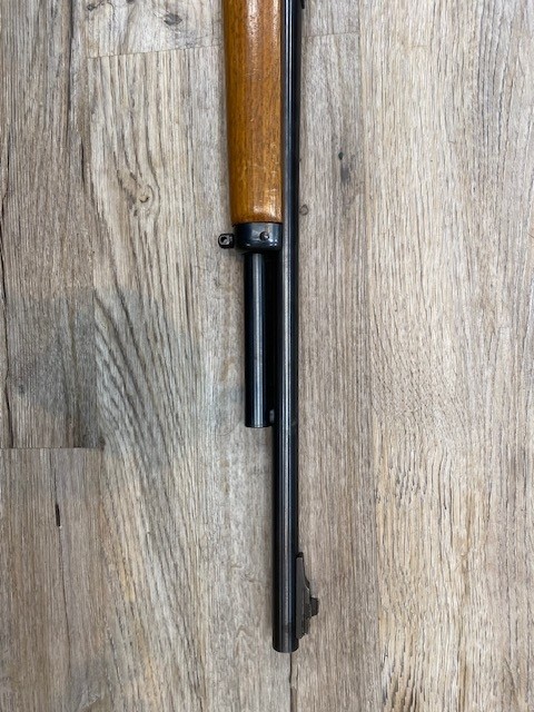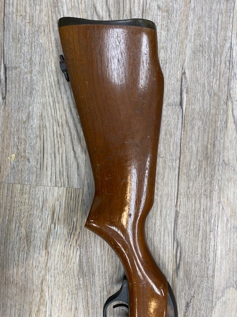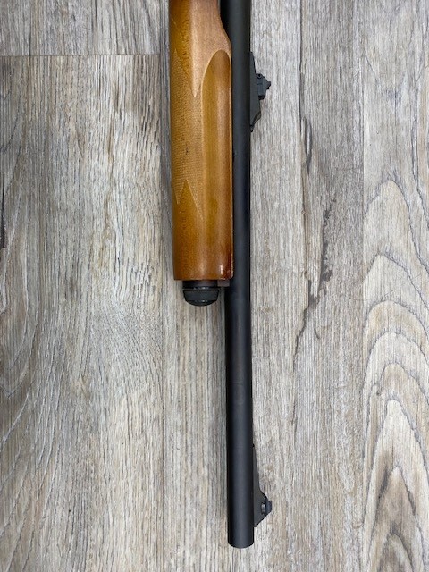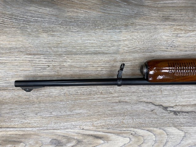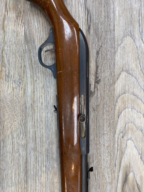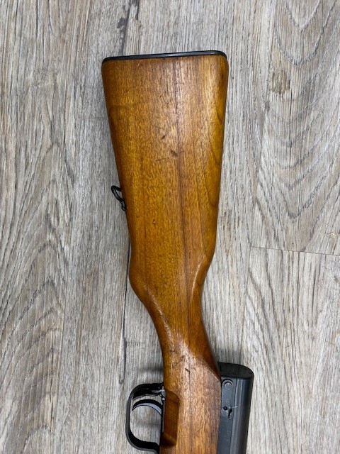 SEMI-AUTO ACTION RIFLE, 22lr, MISSING MAGAZINE, 20" BLUED BARREL, WOOD STOCK, ADJUSTABLE REAR SIGHT WITH FIXED FRONT SIGHT