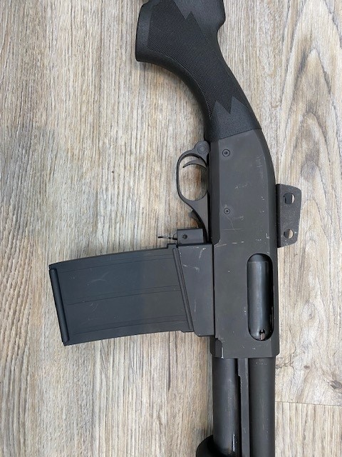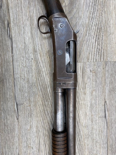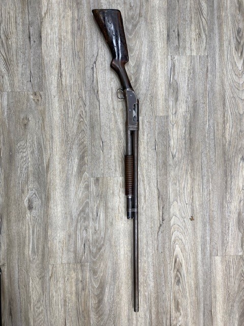 PUMP ACTION SHOTGUN, 12ga 2-3/4", 5 ROUNDS, REPLACEMET 30" BARREL, REPAIRED WOOD STOCK, FIXED FULL CHOKE
