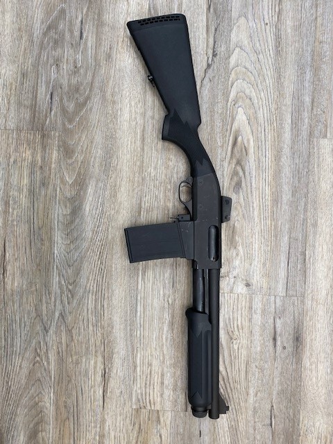 PUMP ACTION SHOTGUN, 12ga 3", MAG FED 5+1 ROUNDS, 12" BARREL, SYNTHETIC STOCK, REMOVABLE CHOKES (MOD INCLUDED), GHOST RING SIGHTS