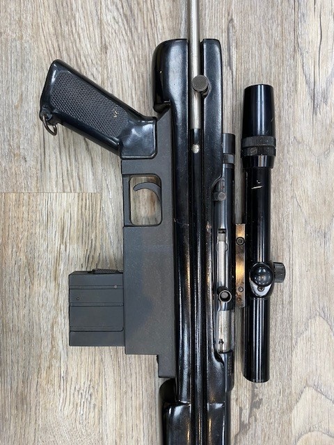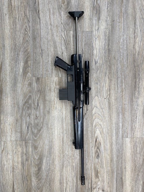 SEMI AUTO ACTION RIFLE, 22 lr, 15 ROUND DETACHABLE BOX MAGAZINE, 18" BARREL, BLACK WOOD STOCK WITH COLLAPSIBLE BUTT STOCK, FLASH HIDER, BUSHNELL 3-7x24 SCOPE