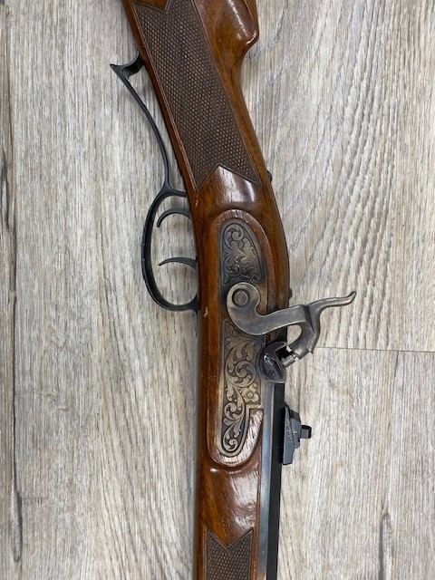 MUZZLELOADER, 50 cal, SINGLE SHOT, 28" OCTAGON BARREL, CHECKERED WOOD STOCK, ADJUSTABLE REAR SIGHT