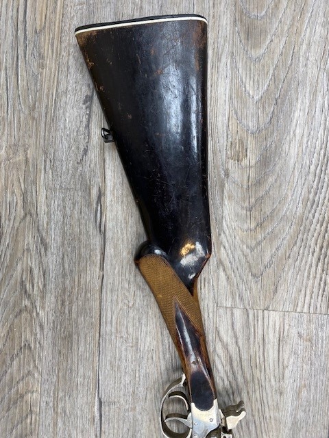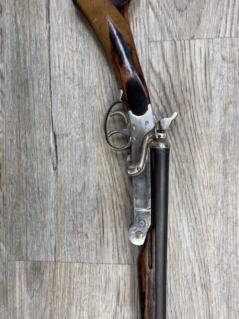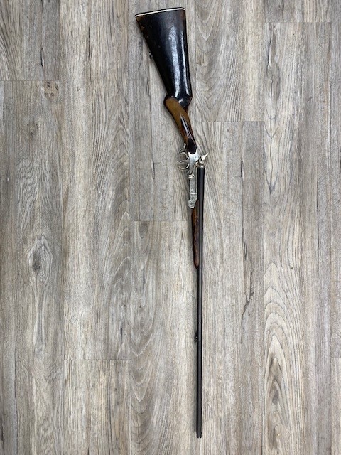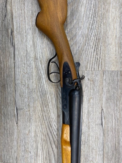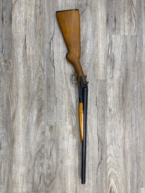 BREAK ACTION SIDE BY SIDE SHOTGUN, 12 ga 2-3/4", 2 ROUNDS, 20" BARRELS, CHECKERED WOOD STOCK, EXPOSED HAMMERS, DOUBLE TRIGGERS, BEAD FRONT SIGHT